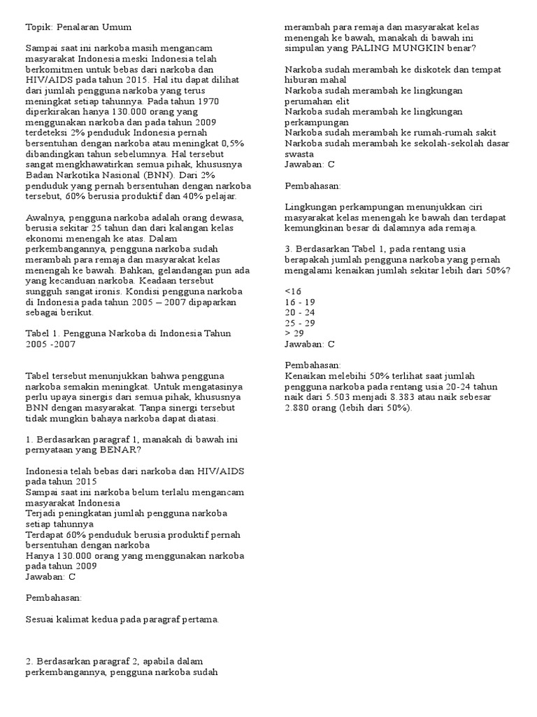 Paket soal ini kami bagikan secara gratis untuk kamu. Salah satu subtes yang akan kamu hadapi di utbk sbmptn 2021 adalah materi penalaran umum. Kemampuan kuantitatif meliputi pengetahuan dan penguasaan matematika dasar. Gimana, sudah cukup bisa dipahami dengan baik, kan? Kemampuan memaham bacaan dan menulis. Pada materi tps utbk 2021, kamu akan berhadapan dengan beberapa tipe soal yaitu penalaran umum, pemahaman bacaan, pengetahuan umum, dan pengetahuan kuantitatif. April 10, 2020 you may also like. Pengetahuan dan pemahaman umum 4. Hal ini agar kamu lebih mudah memahami seluruh materi terkait penalaran umum. 12 january, 2021 soal dan pembahasan sosiologi sbmptn. Buah jambu, melon, semangka, jeruk, manga dan durian akan dimasukkan ke dalam peti dengan ketentuan sebagai berikut: Latihan soal utbk penalaran umum bahasa inggris. Contoh soal dan pembahasan penalaran umum tes potensi skolastik (tps) utbk 2020 pdf setelah hampir dua dekade, para ilmuwan menemukan strain baru human immunodeficiency virus ( hiv).